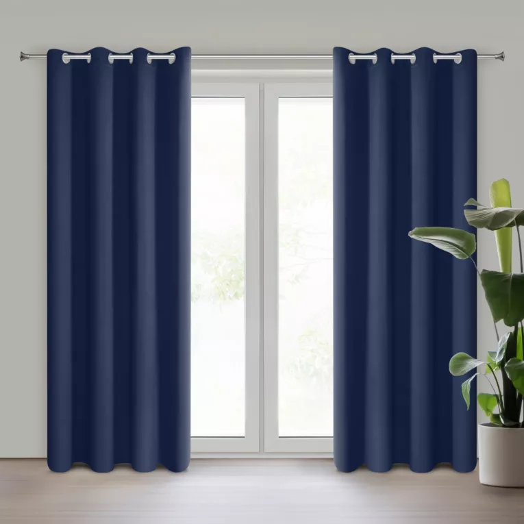 Zasłona granatowa zaciemniająca gładka półmatowa 135x270 cm przelotka LOGAN Eurofirany