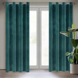 Aksamitny w dotyku, szlachetny matowy welwet, to tkanina, która na zasłonach prezentuje się wyjątkowo pięknie. Elegancka, jednokolorowa zasłona, uszyta z tkaniny welwetowej, to propozycja dla miłośników dobrego smaku i najwyższej jakości. Zasłony welwetowe to połączenie estetyki z funkcjonalnością. Właściwości tej grubej, ekskluzywnej tkaniny sprawia, że zasłony z welwetu zapewnią Ci optymalny komfort. Doskonale odizolują wnętrze od światła dziennego, zapewnia optymalną ochronę przed światłem słonecznym, gdyż stopień zaciemnienia wynosi 80-90 %. Praktyczne względy nie dominują tu jednak wrażeń estetycznych, jakie dostarcza starannie uszyta zasłona welwetowa.
