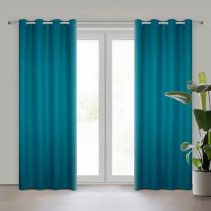 Zasłony zaciemniające są bardzo proste w rozwieszaniu. Okrągłe przelotki umożliwiają równe rozłożenie zasłony na karniszu bez najmniejszych problemów. Taki sposób rozpinania zasłon całkowicie eliminuje problem przypadkowego odpięcia się i opadnięcia zasłony.
