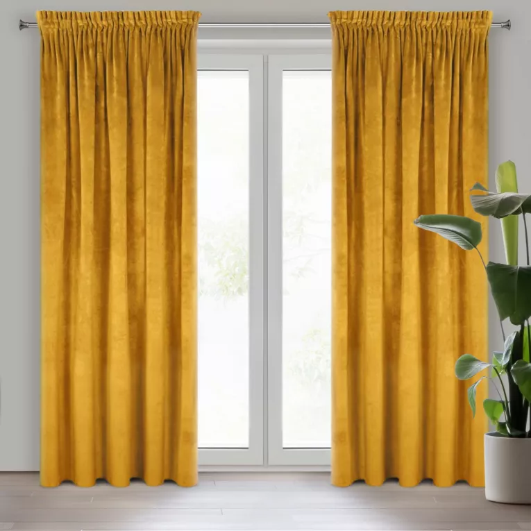 Zasłona musztardowa z ekskluzywnego matowego welwetu 140x270 cm taśma VILLA Eurofirany