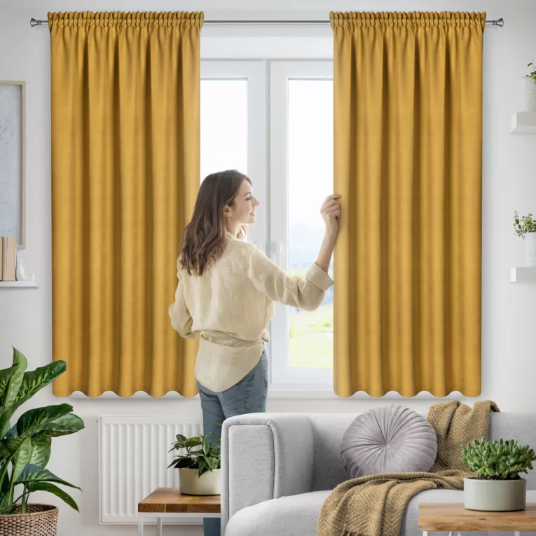 Zasłona musztardowa z tkaniny welurowej 140x175 cm tunel Dora Eurofirany