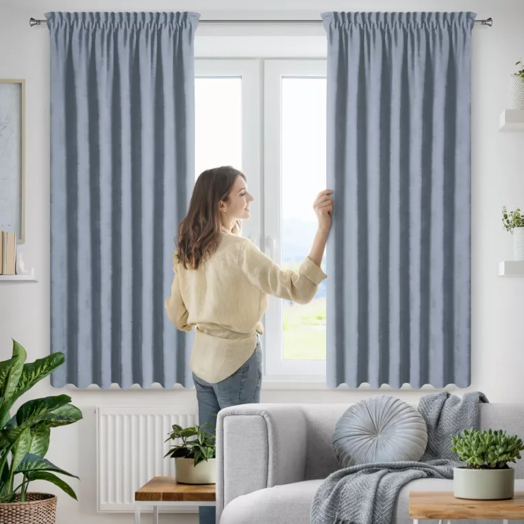 Zasłona niebieska z tkaniny welurowej 140x175 cm taśma - Dora Eurofirany