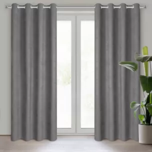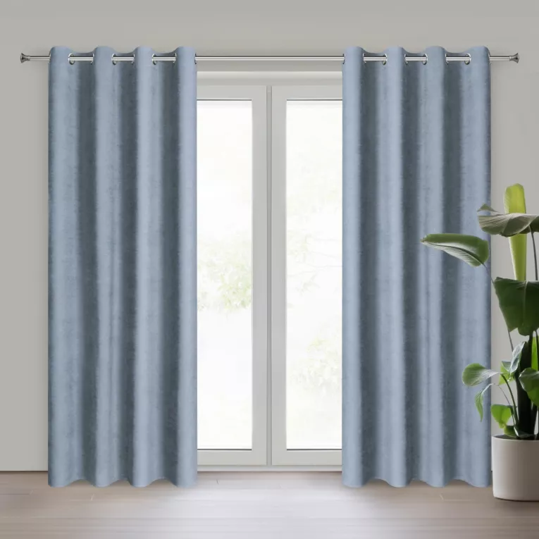 Zasłona Dora z tkaniny o welurowej strukturze to prosta, a zarazem elegancka i nowoczesna dekoracja okienna. Jednokolorowa zasłona to propozycja, która sprawdza się w każdym wnętrzu i pasuje do każdej jego aranżacji. Metalowe przelotki i dają możliwość zawieszenia zasłony na tradycyjnym karniszu typu drążek/rurka, taki sposób zawieszenia pozwala na sprawną zmianę dekoracji.  Zasłona Dora posiada średni stopień zaciemnienia, dzięki czemu zapewni prywatność i osłoni wnętrze przed bezpośrednim słońcem.
