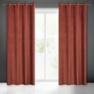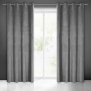 Jednokolorowe zasłony z matowego welwetu to doskonały wybór do każdego wnętrza. Gładkie, miękkie zasłony o uniwersalnym charakterze będą świetnie prezentowały się zarówno we wnętrzach klasycznych i eleganckich, jak i w nowoczesnych aranżacach. Na całej powierzchni zasłony zdobione są subtelnym tłoczeniem we wzór pionowych fal.  Duże kółka pasują na karnisze o różnych średnicach a równomierne rozmieszczenie przelotek pomaga idealnie ułożyć tkaninę w fale.