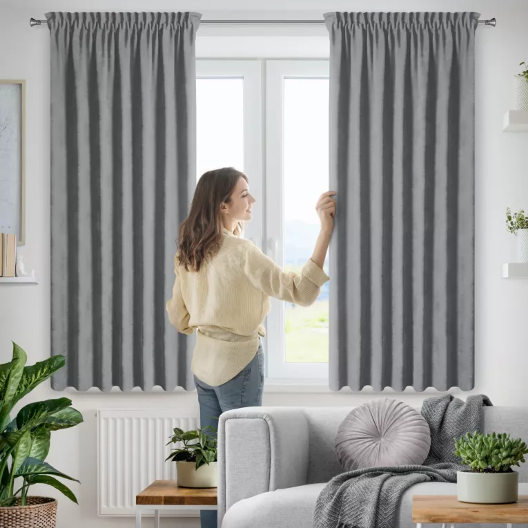Zasłona szara z tkaniny welurowej 140x175 cm taśma - Dora Eurofirany