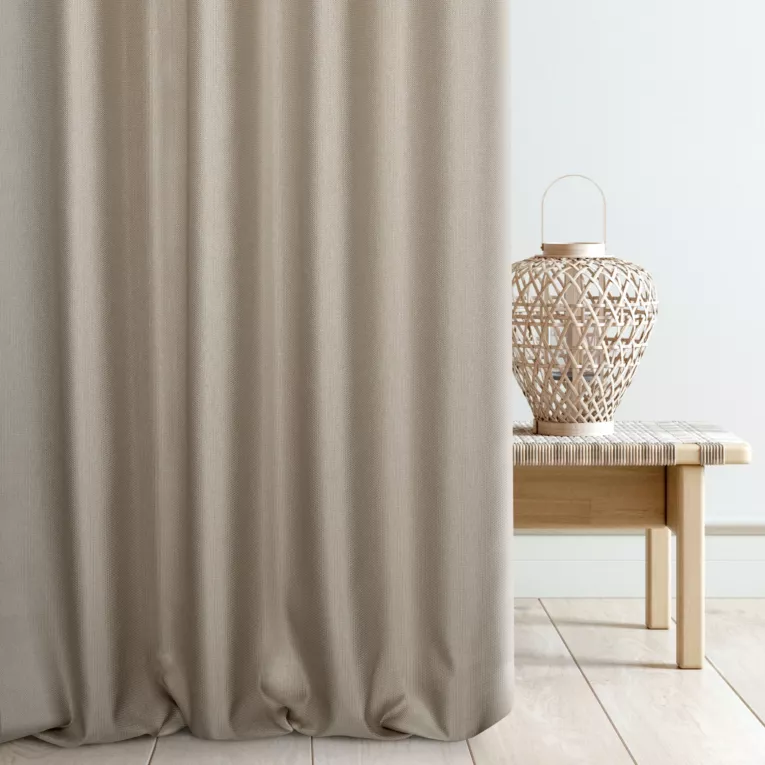 Przedstawiamy elegancką tkaninę zasłonową, która łączy w sobie gładką powierzchnię z subtelnym, ozdobnym splotem, wzbogaconym o metaliczne nici. Dzięki temu, materiał zyskuje elegancki blask, który wprowadza do wnętrza subtelną nutę luksusu i wyrafinowania.