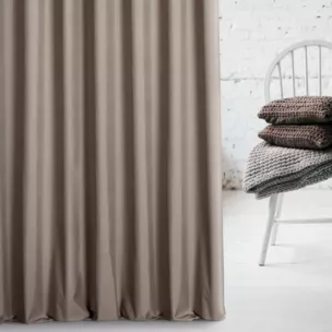 Zasłona szyta na taśmie 5 cm jasnobrązowa z tkaniny typu Blackout zaciemniającej w 100%