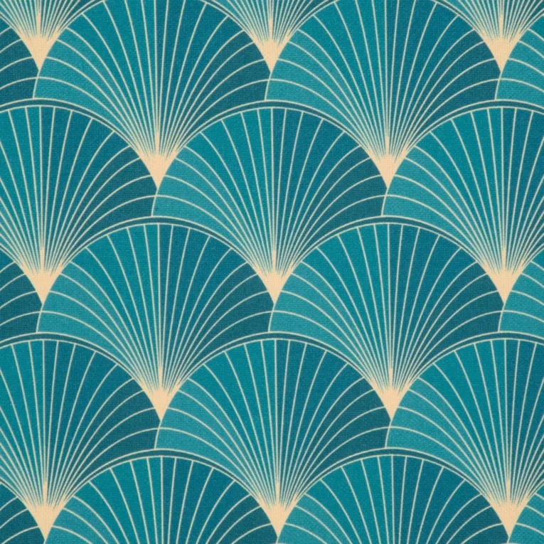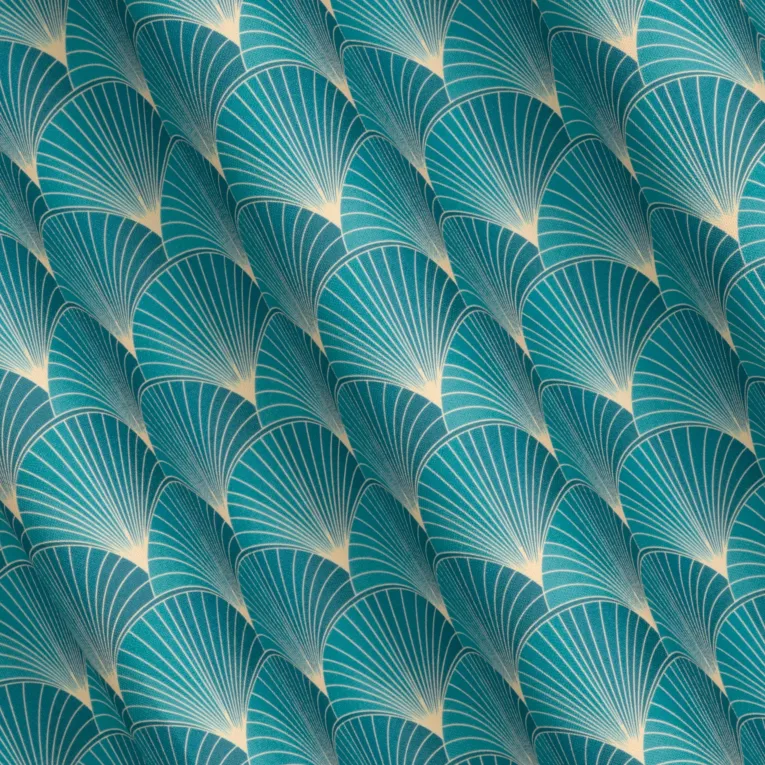 Miękka tkanina o naturalnym splocie pokryta fantazyjnym złotym nadrukiem na turkusowym tle, to atrakcyjna propozycja do nowoczesnego wnętrza. Modne barwy to dobry pomysł na odświeżenie wnętrza. Grubszy, zwarty materiał zapewnia ochronę przed nadmiarem promieni słonecznych, nie zaciemniając wnętrza. Matowy materiał, miękko się układa i ładnie prezentuje po zawieszeniu w oknie, tworząc delikatne i regularne fale. Tkanina świetnie się sprawdzi w jasnych, przestronnych wnętrzach. Intensywna kolorystyka świetnie się sprawdza we wnętrzach urządzonych w spokojnych barwach, dodając im energii.