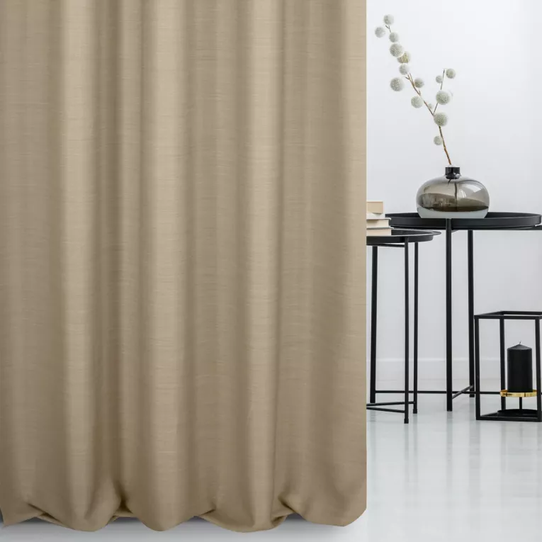 Zasłona szyta na tunelu ciemnobeżowa z miękkiej tkaniny o naturalnym splocie w stylu ekologicznym