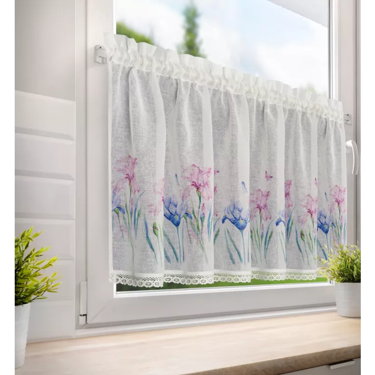 Zazdrostka biało, różowa z etaminy zdobiona nadrukiem kwiatów i koronką 150x60 cm tunel DOLOREZ Eurofirany