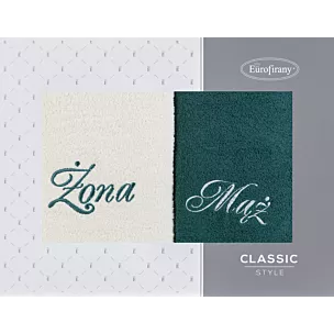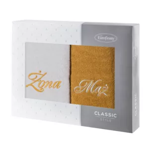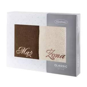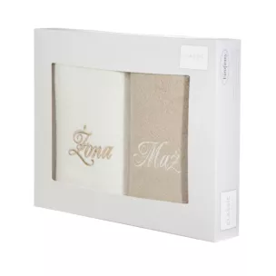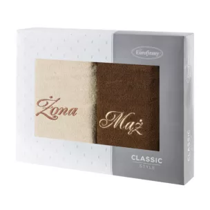 Zestaw ręczników bawełnianych 2 szt 50x90 cm z haftem Żona i Mąż kolor beżowy,brązowy 400 g/m2 Eurofirany
